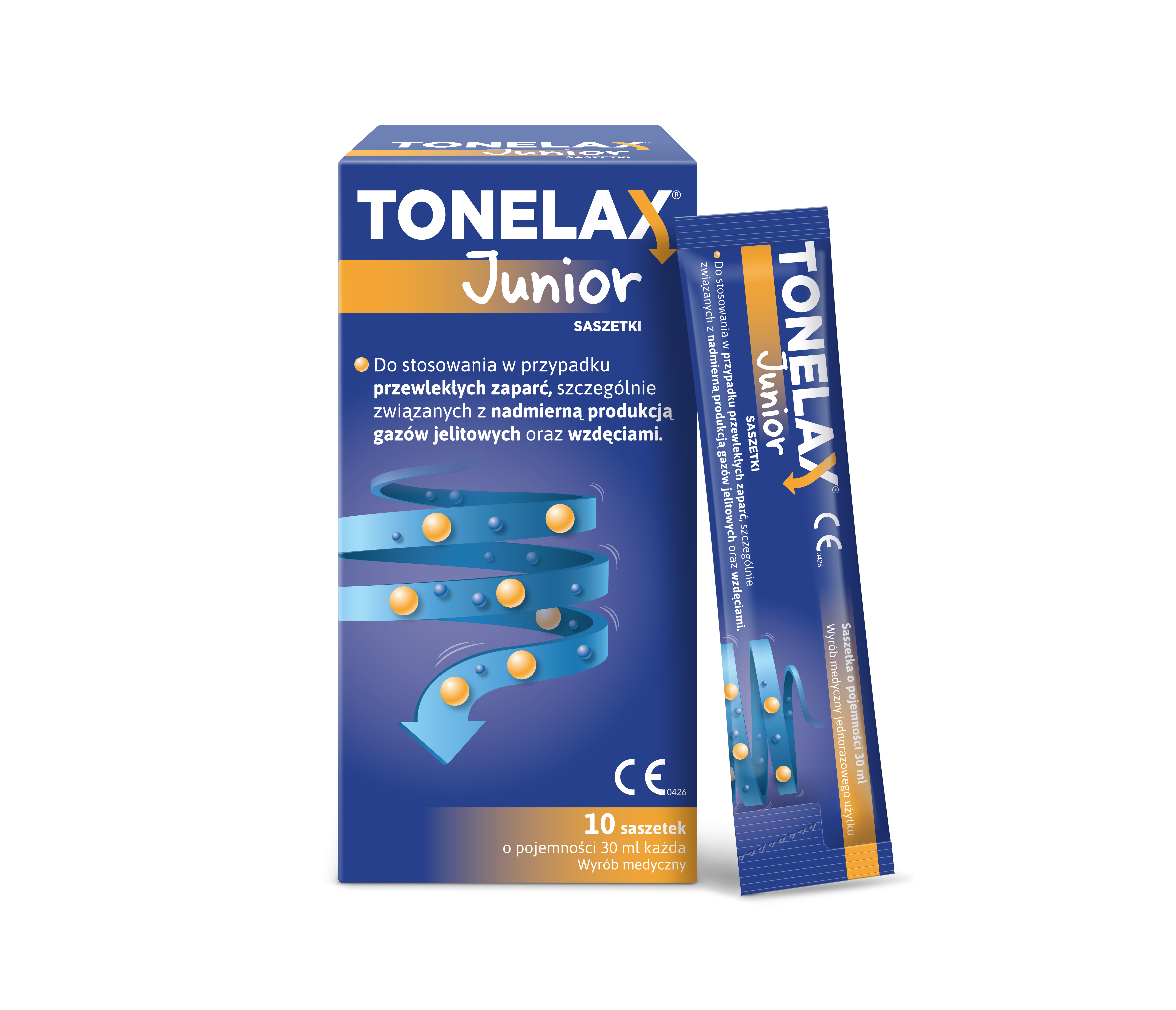 Tonelax® Junior przeznaczony jest do stosowania w przypadku przewlekłych zaparć, szczególnie związanych z nadmierną produkcją gazów jelitowych oraz wzdęciami. Makrogol dzięki swojemu powinowactwu do wody, poprzez działanie osmotyczne, zmiękcza stolec ułatwiając jego wydalenie bez powodowania skurczów, bólu brzucha lub stanów nagłych. Obecność symetykonu w składzie skutecznie wspomaga adsorpcję gazów jelitowych związanych z zaparciami.